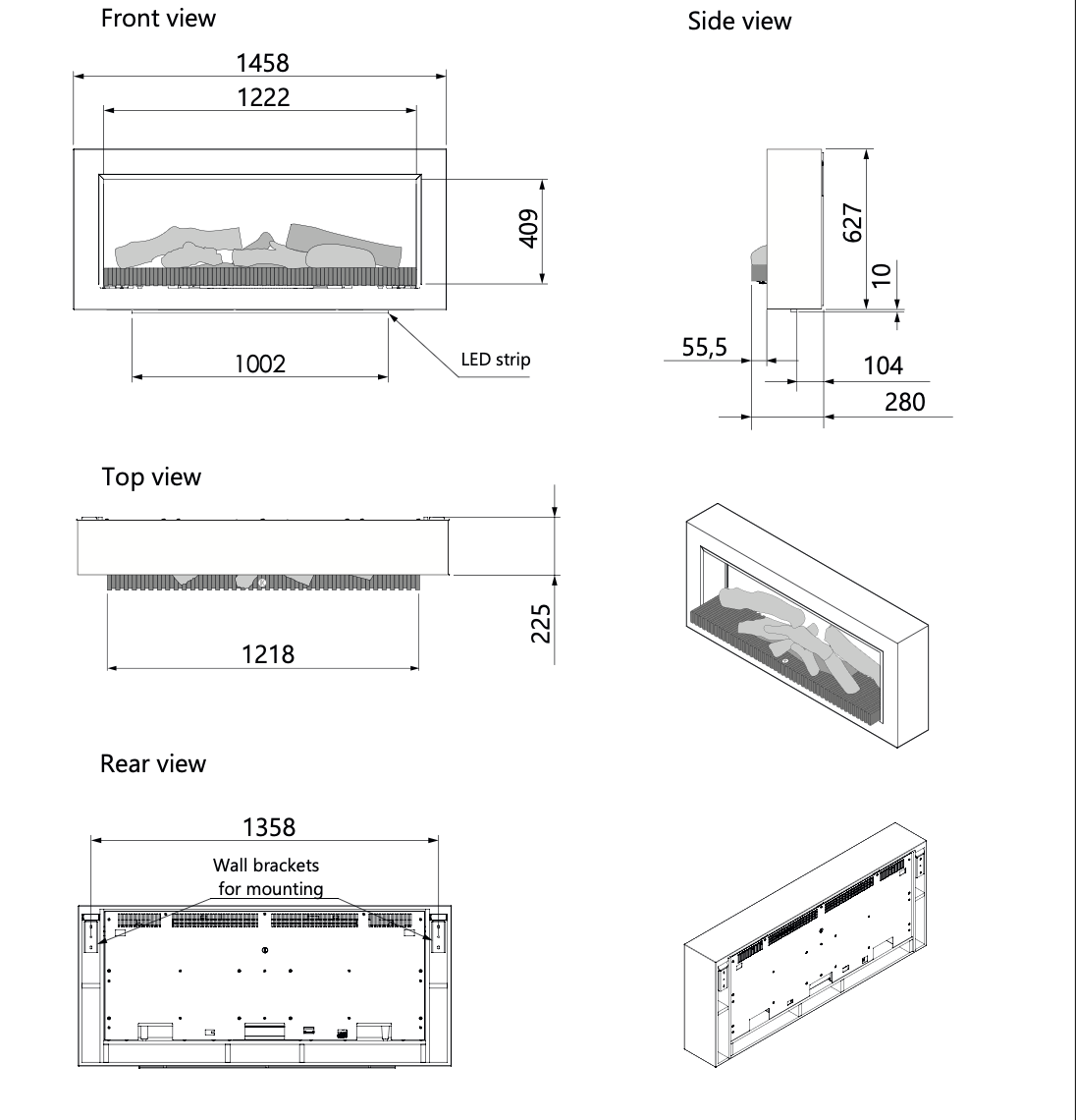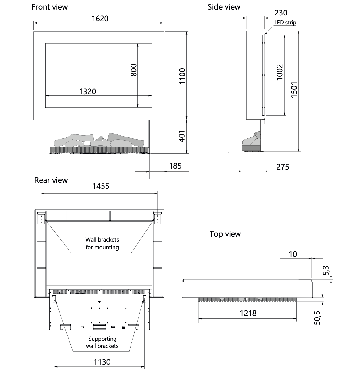- Naar keuze te combineren met jouw eigen 55" televisie die exact uitlijnt met de haard.